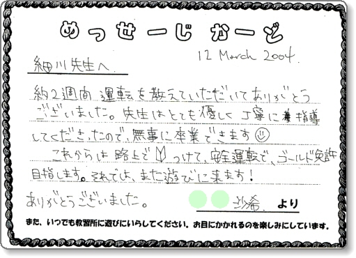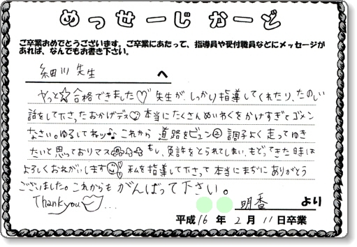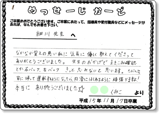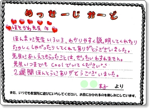 感謝しています。また会いたいですね〜 (^^)/~~~