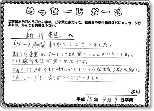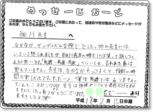 面白いメッセージをくださった方のを中心に紹介させて頂きました。